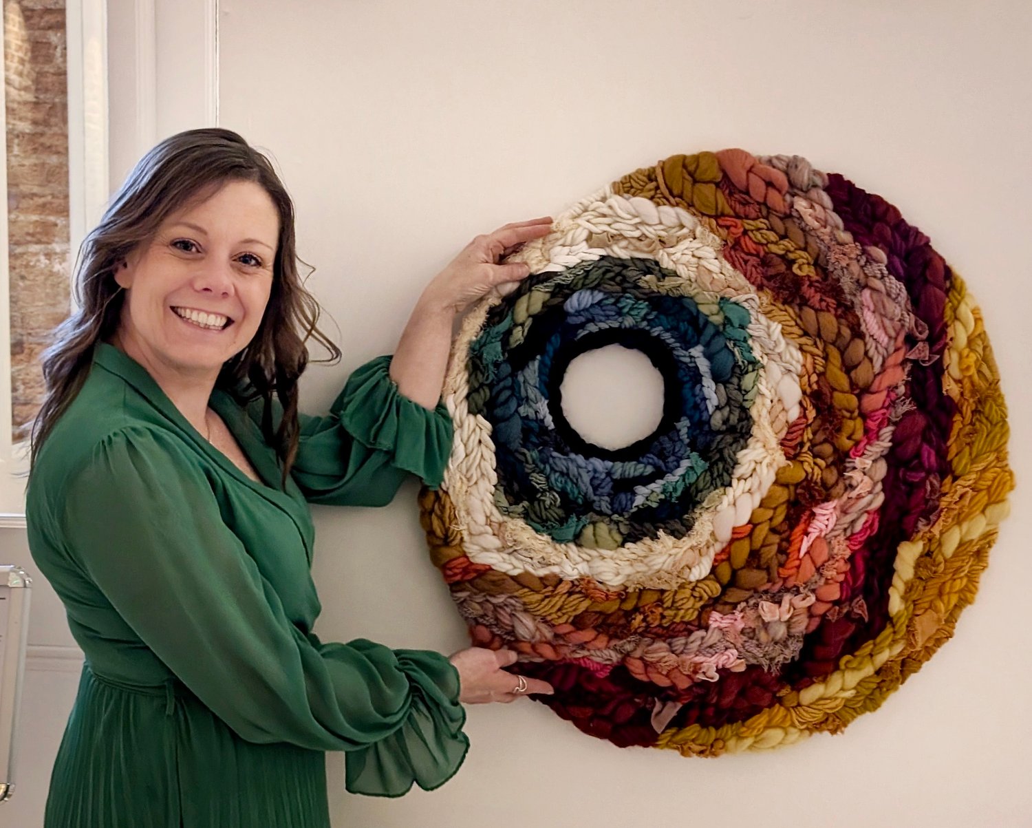 This piece measures 70 cm in diameter and is made with all natural and recycled yarns.